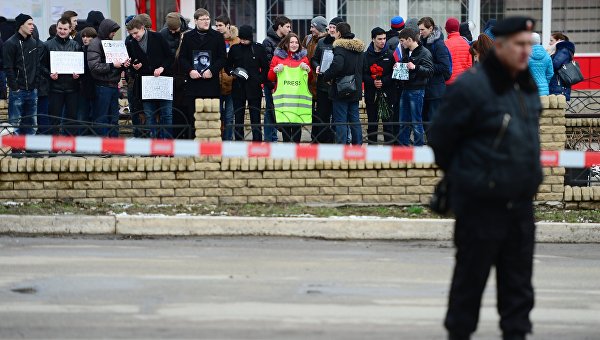 Журналистов перед допуском в здание суда пропускали через металлоискатели, а потом их обнюхивали полицейские ищейки.