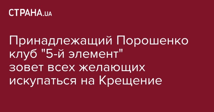 Принадлежащий Порошенко клуб "5-й элемент" зовет всех желающих искупаться на Крещение