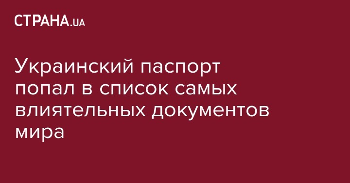 Паспорт гражданина Украины вошел в 50-ку самых влиятельных паспортов мира. Такие данные публикуются в исследовании Global Passport Power Rank 2017, составленный канадской консалтинговой компанией Arton Capital.