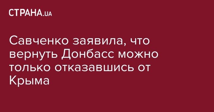 Говоря об освобождении Донбасса и сроках этого, Савченко сказала, что если это будет сделано мирным путем, например, если Россия не выдержит санкций, то это обернется обязательной сдачей Крыма.