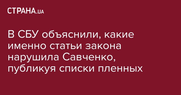 В Службе безопасности озвучили положения закона о борьбе с терроризмом и других нормативных актов, которые нарушила народный депутат Надежда Савченко, опубликовав списки заложников. Об этом пишет "Интерфакс-Украина".