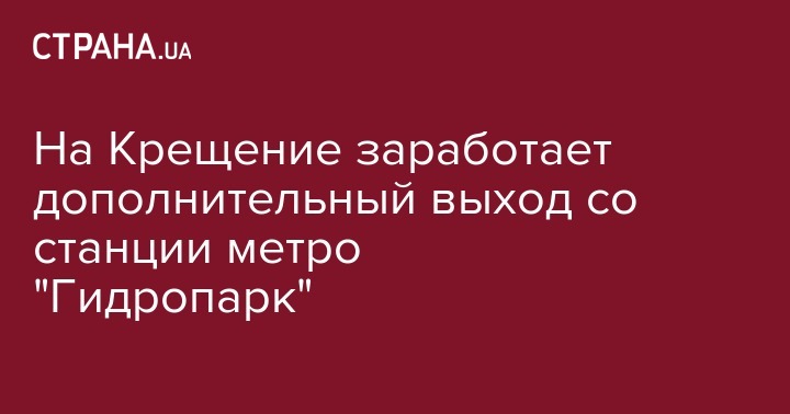В четверг, 19 января в день Крещения (Богоявления) заработает дополнительный выход (восточный) со станции Киевского метрополитена "Гидропарк".