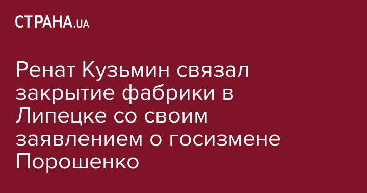 Ренат Кузьмин связал закрытие фабрики в Липецке со своим заявлением о госизмене Порошенко