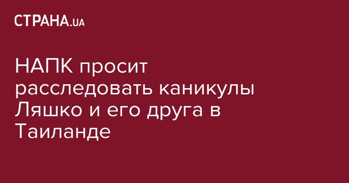 НАПК просит расследовать каникулы Ляшко и его друга в Таиланде