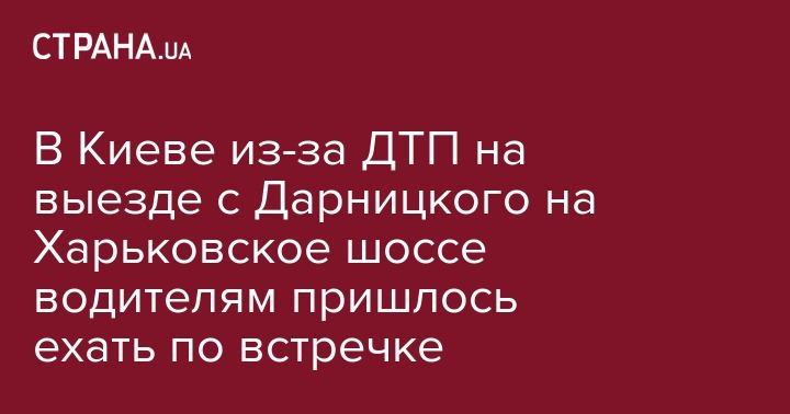 "ДТП в Киеве на выезде с Дарницкого на Харьковское шоссе. Перекрыли всю дорогу. Все объезжают по встречной полосе", - говорится в сообщении со ссылкой на очевидцев.