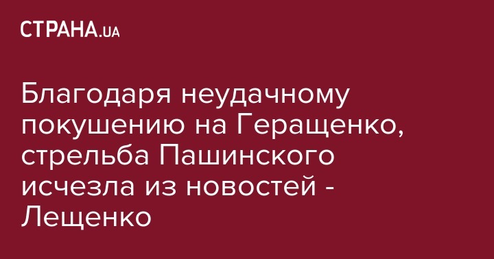 Благодаря неудачному покушению на Геращенко, стрельба Пашинского исчезла из новостей - Лещенко