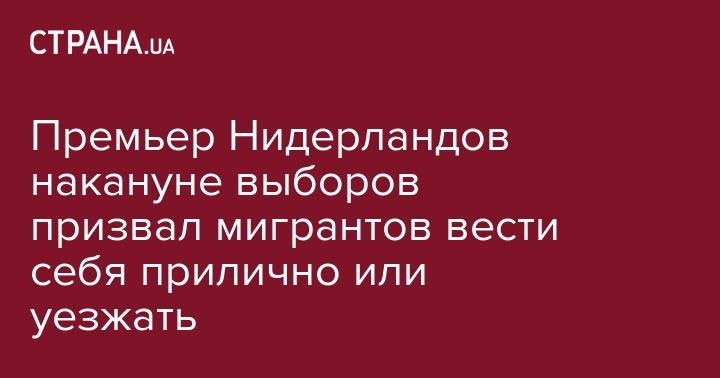 Премьер-министр Нидерландов Марк Рютте, в преддверии парламентских выборов, призвал проживающих в государстве мигрантов соблюдать общественный порядок или уезжать.