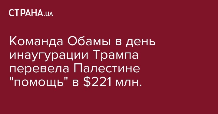 Администрация Барака Обамы буквально в день инаугурации Трампа выделила Палестине $221 млн. на гуманитарную помощь в регионе и поддержку реформ. Об этом пишет The Associated Press.