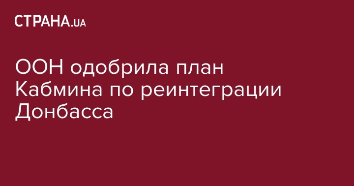 Организация Объединенных Наций одобрила план украинского правительства по реинтеграции Донбасса. Об этом говорится в пресс-релизе, распространенном агентством ООН по делам беженцев.