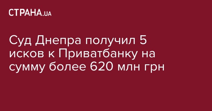 Октябрьский районный суд города Днепра зарегистрировал пять исков к национализированному Приватбанку о взыскании убытков и морального вреда на общую сумму более 620 млн грн в связи со списанием банком средств со счетов, в том числе по договорам депозитных вкладов, передает "Интерфакс-Украина".