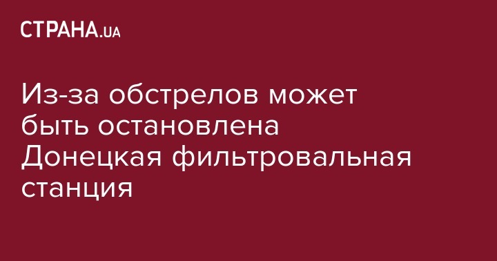 Из-за обстрелов может быть остановлена Донецкая фильтровальная станция