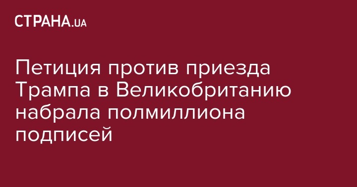 Напомним, петиция под названием "Не допустить государственный визит Дональда Трампа в Соединенное Королевство" была размещена неким Грэмом Гестом в воскресенье. И уже через несколько часов она набрала 100 тысяч подписей, необходимых для формального рассмотрения документа законодательным органом.