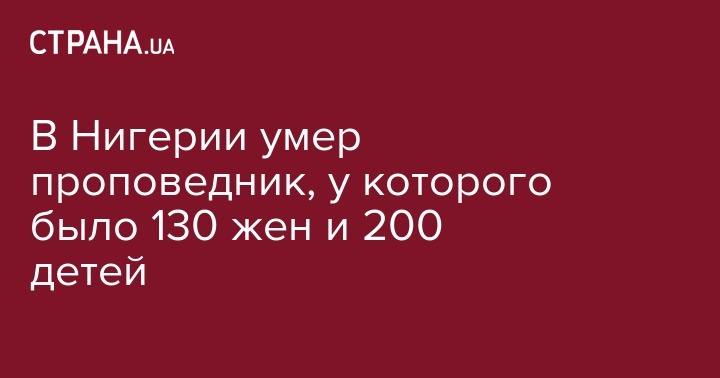 В Нигерии умер проповедник, у которого было 130 жен и 200 детей