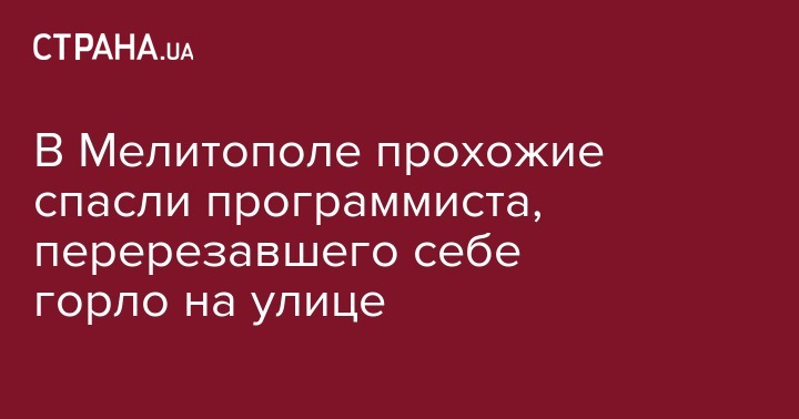 29 января в Мелитополе молодой человек перерезал себе горло прямо на улице. Проходившие мимо люди успели вызвать скорую и парня удалось спасти. Об этом сообщает "РИА – Мелитополь".