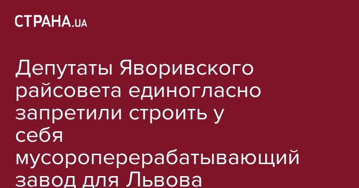 На внеочередном заседании депутаты Яворивского райсовета приняли решение о запрете строительства полигона твердых бытовых отходов (ТБО / ТПП) на территории района. "За" проголосовал 31 депутат - все, принимавшие участие в сессии.
