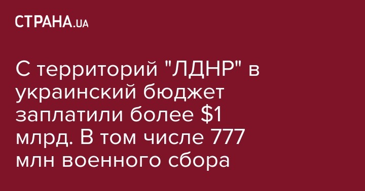 При этом за предыдущий 2015 год, по информации СБУ, с неподконтрольной Украине территории в госбюджет Украины выплачено 19,5 миллиардов гривен. Таким образом, в 2016 году показатель вырос в полтора раза.