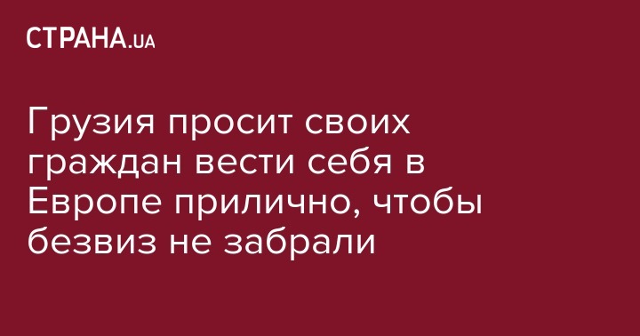Министерство иностранных дел Грузии опубликовало призыв к гражданам страны с рекомендацией придерживаться условий безвизового режима с Евросоюзом и помнить о механизме аннулирования безвиза. Обращение размещено на сайте МИД Грузии.