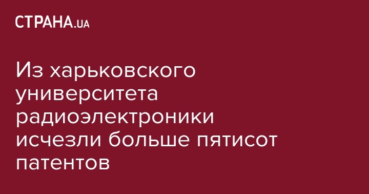 Внутренний аудит Харьковского национального университета радиоэлектроники (ХНУРЭ), проведенный Министерством образования и науки, выявил, что отсутствие качественного контроля над сохранностью и использованием объектов интеллектуальной собственности вуза привело к потере 507 патентов на изобретения и изделия, сообщает "Интерфакс-Украина".
