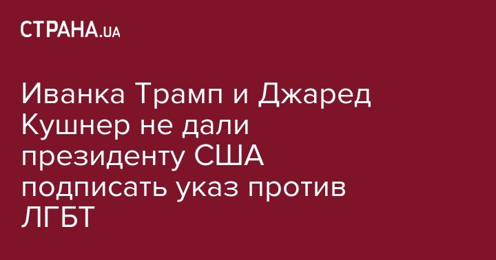 Иванка Трамп и Джаред Кушнер не дали президенту США подписать указ против ЛГБТ