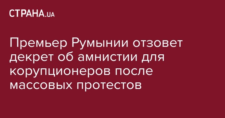 Премьер Румынии Сорин Гриндяну под давлением акций протеста пообещал отозвать спорную поправку к уголовному кодексу, которая смягчает наказание осужденных коррупционеров. Об этом сообщает Deutsche Welle.
