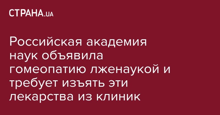 Комиссия по борьбе с лженаукой при президиуме Российской академии наук (РАН) подготовила меморандум "О лженаучности гомеопатии". Ученые требуют изъять гомеопатические препараты из государственных клиник. Об этом сообщает "Коммерсант".