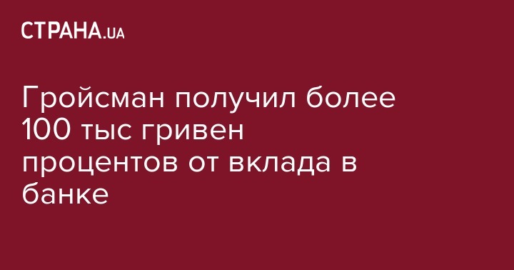 Премьер-министр Украины Владимир Гройсман получил около 102,77 тыс. грн в виде процентов от депозита в "Ощадбанке", который принадлежит государству. Это следует из информации, размещенной в Едином государственном реестре деклараций.