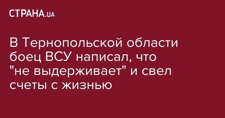 В Тернопольской области боец ВСУ написал, что "не выдерживает" и свел счеты с жизнью