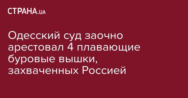 Приморский районный суд Одессы арестовал четыре плавучие буровые установки, которые принадлежат государственной компании "Черноморнефтегаз" и были захвачены во время аннексии Крыма Россией. Об этом говорится в постановлении суда от 27 января 2017 года, обнародованном в Едином государственном реестре судебных решений.