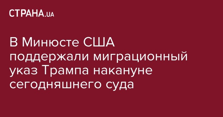 Министерство юстиции США выпустило 15-станичное резюме в поддержку миграционного указа президента Дональда Трампа. Об этом сообщает "Русская служба ВВС".