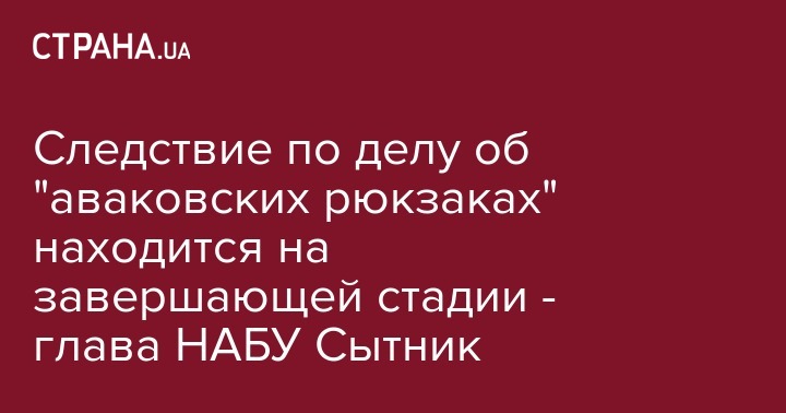 Следствие по делу об "аваковских рюкзаках" находится на завершающей стадии - глава НАБУ Сытник
