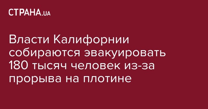 Во избежание катастрофы власти Калифорнии потребовали провести немедленную эвакуацию жителей районов, расположенных ниже плотины.