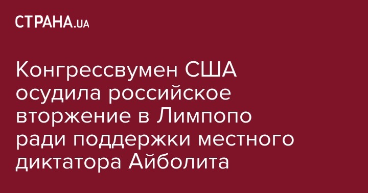 Конгрессвумен США осудила российское вторжение в Лимпопо ради поддержки местного диктатора Айболита