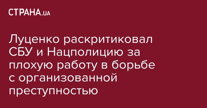 Генеральный прокурор Юрий Луценко раскритиковал Службу безопасности Украины и Национальную полицию, которые в прошлом году обезвредили только 5 организованных преступных групп. Об этом он заявил во время совещания в ГПУ, которое транслировал телеканал "112 Украина".