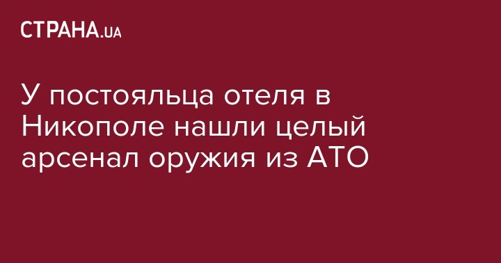 У постояльца в номере отеля в городе Никополь Днепропетровской области были обнаружены и изъяты две гранаты Ф1 и РГД-5, 2 запала к гранатам, два охотничьих ножа, патроны, пятизарядное помповое ружье и сигнальная ракета.