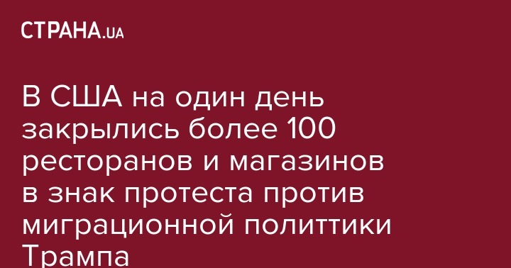 В четверг, 16 февраля, в рамках акции "День без мигрантов" в США на один день закрылись более 100 ресторанов и компаний по всей стране. Об этом сообщает Русская служба ВВС.