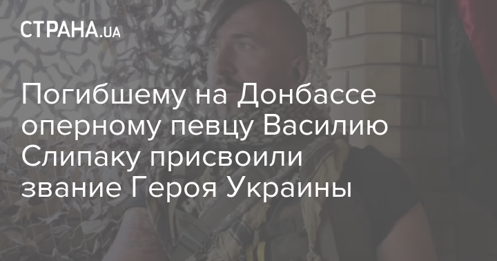Президент Петр Порошенко присвоил звание Героя Украины украинскому оперному певцу, волонтеру, участнику Революции достоинства и боевых действий на Донбассе Василию Слипаку. Об этом говорится в указе главы государства №42/2017 от 20 февраля.