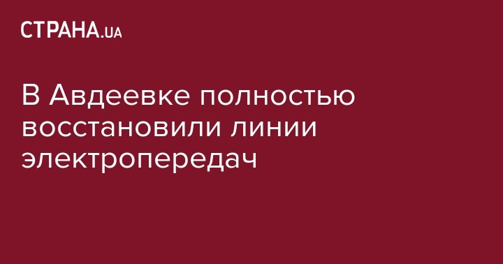 В Авдеевке, которая 18 февраля от обстрелов боевиков осталась без света, полностью восстановили линии электропередач. Об этом написал в своем Twitter пресс-секретарь президента Святослав Цеголко.