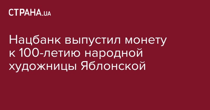 В четверг, 21 февраля, Нацбанк Украины вводит в обращение памятную монету "Татьяна Яблонская" номиналом 2 гривны. Об этом сообщается на сайте регулятора