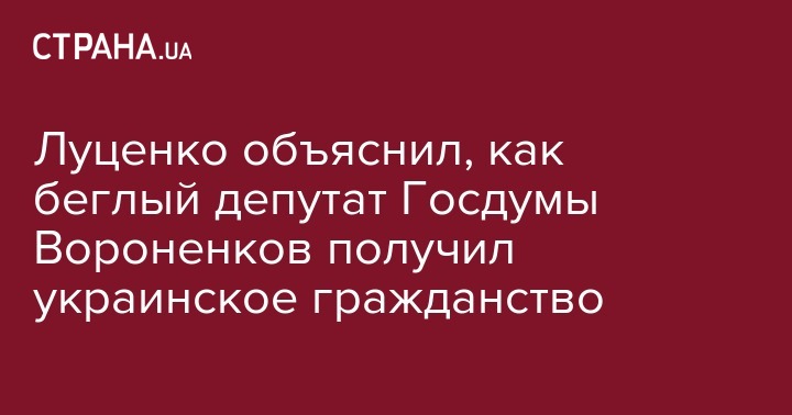 Луценко объяснил, как беглый депутат Госдумы Вороненков получил украинское гражданство