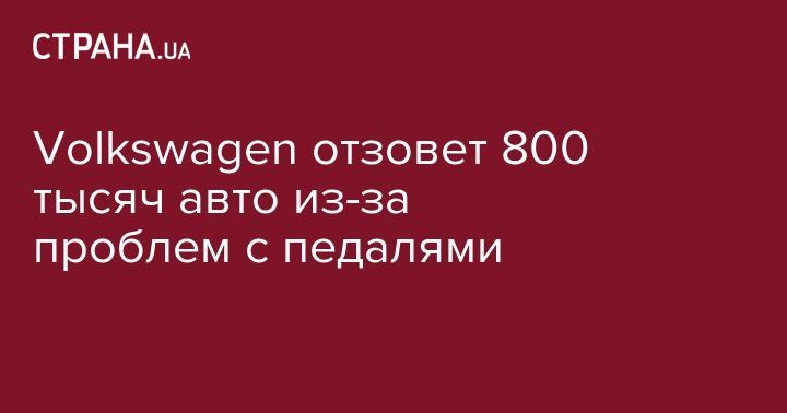 Автоконцерн Volkswagen объявил об отзыве примерно 800 тыс. автомобилей из-за возможных проблем в педальном механизме, передает сегодня, 24 марта,  УНН со ссылкой на ВВС.