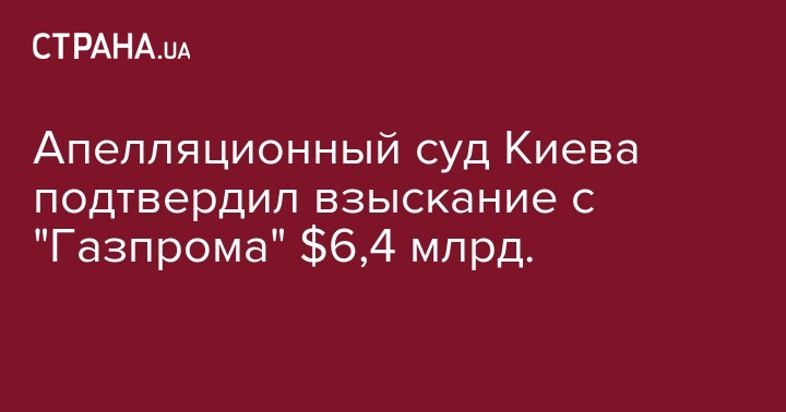 Апелляционный суд Киева подтвердил взыскание с "Газпрома" $6,4 млрд.