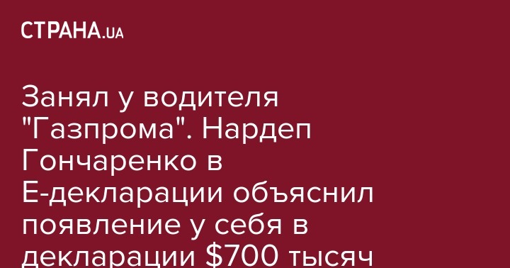 "Мы с женой хотели купить дом и мы эти деньги одолжили… Одолжили 700 тыс. долларов у тестя, который работал в советском "Газпроме", работал водителем. Когда происходила корпоратизация "Газпрома", он получил свою долю акций", - пояснил Гончаренко.