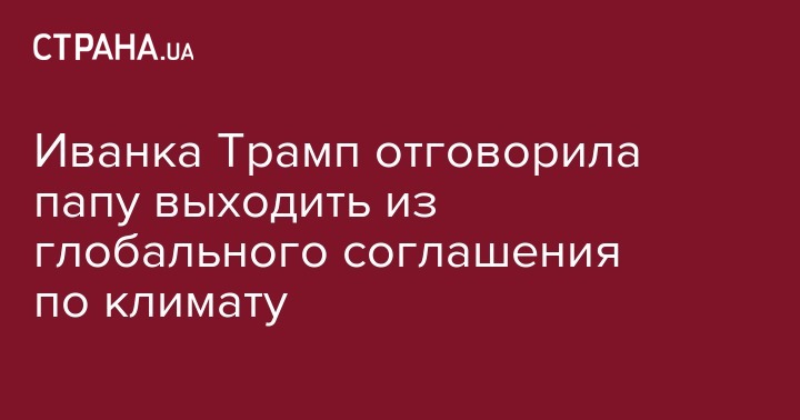 Американские СМИ сообщают, что семья Дональда Трампа, его дочь Иванка и ее муж Джаред Кушнер, настояли на том, чтобы президент США отказался от идеи вывести страну из Парижского соглашения по климату. Об этом пишет Wall Street Journal, ссылаясь на источники.