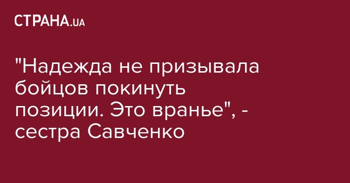 "Надежда не призывала бойцов покинуть позиции. Это вранье", - сестра Савченко
