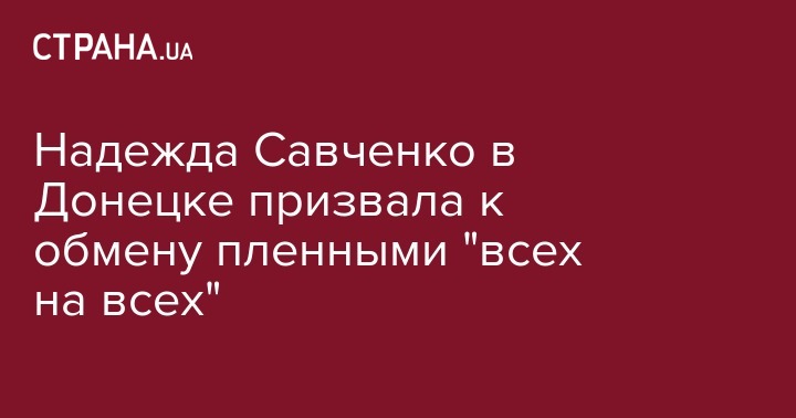 Народный депутат Украины Надежда Савченко, прибывшая в пятницу, 24 февраля в "ДНР", призвала все стороны конфликта на Донбассе к обмену пленными бойцами в формате "всех на всех".