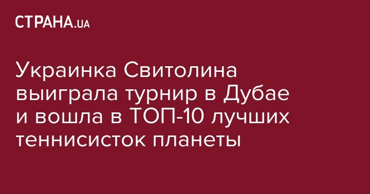 Украинская теннисистка Элина Свитолина выиграла престижный международный турнир серии WTA в Дубае. Об этом сообщает пресс-служба Национального олимпийского комитета Украины на своей странице в Facebook.