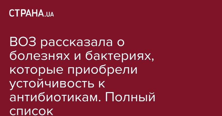 В понедельник, 27 февраля 2017 года Всемирная организация здравоохранения опубликовала список заболеваний, которые приобрели устойчивость к ныне используемым для лечения антибиотикам.