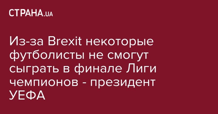 Президент УЕФА Александер Чеферин, говоря о Brexit, выразил опасение, что не все футболисты могут сыграть в финале Лиги чемпионов-2017, который состоится в столице Уэльса Кардиффе.