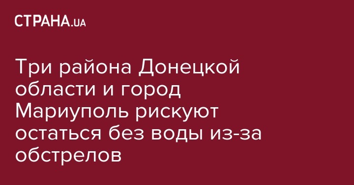 "В случае повреждения насосного оборудования в результате обстрелов, есть угроза полного прекращения подачи воды в Волновахский, Красноармейский и Добропольский районы Донецкой области, а также в город Мариуполь", - говорится в обнародованном во вторник вечером сообщении.