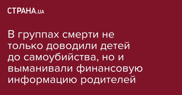 "Важно сказать, что проводя анализ выявленных "суицидальных групп", есть большое количество фейковых "суицидальных групп", которые используют в данное время мошенники. Среди заданий, которые дают непосредственно детям, - назвать персональную информацию о родителях, предоставить (данные – ред.) банковских карт, которые в дальнейшем используются для личного обогащения мошенников", - сказал он на пресс-конференции в среду в Киеве.